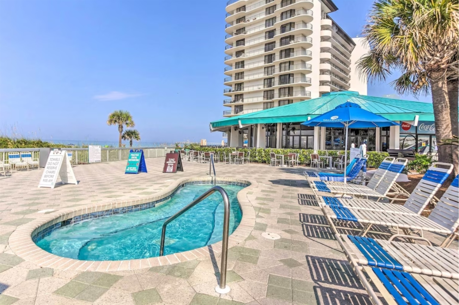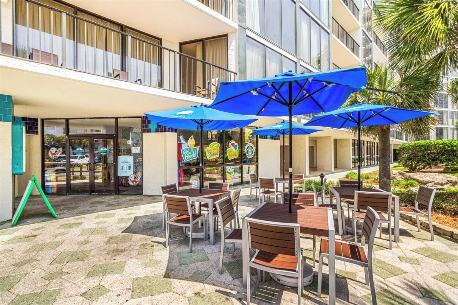 Additional on-site options include Edgie's beach store with Starbucks and ice cream, free tram service throughout the resort, and plenty of beach chairs, watersports and fun activities like parasailing, banana boat rides and waverunner rentals right at our property.